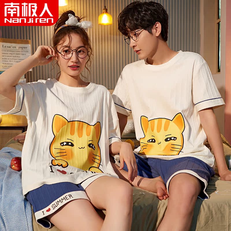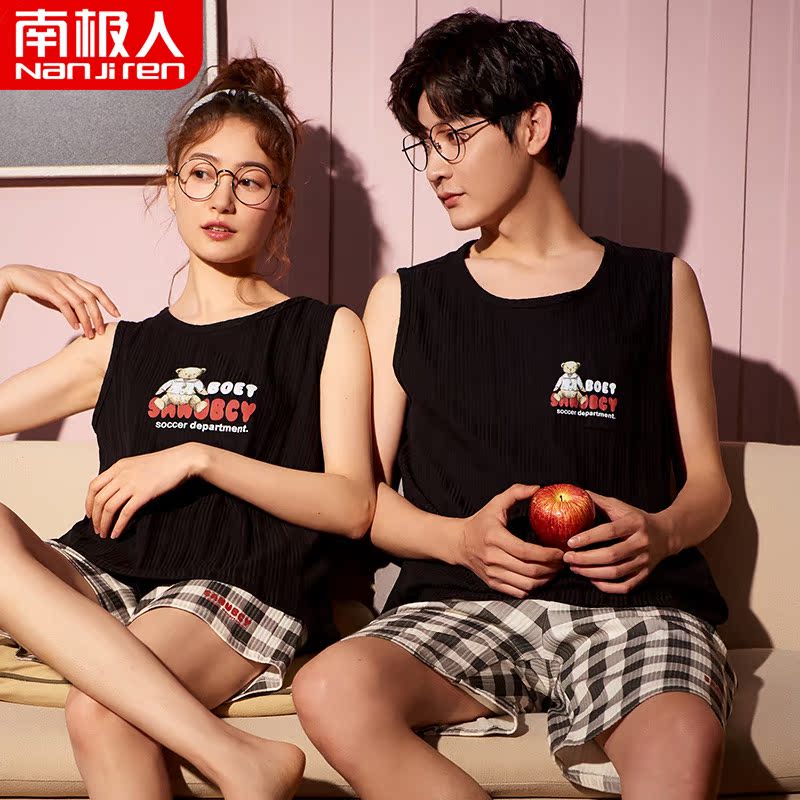 Couple pajamas summer cotton vest sleeveless men's thin section women's short-sleeved shorts 2022 new black grid suit