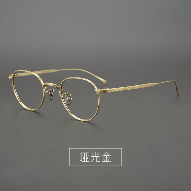 Replica carving! 9 grams of pure titanium ultra-light retro round frame myopia glasses for men and women can be matched with degree anti-blue light frames