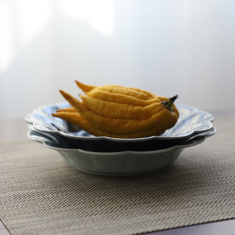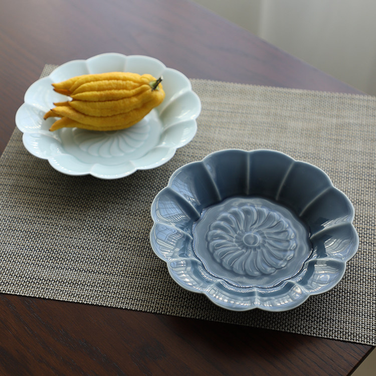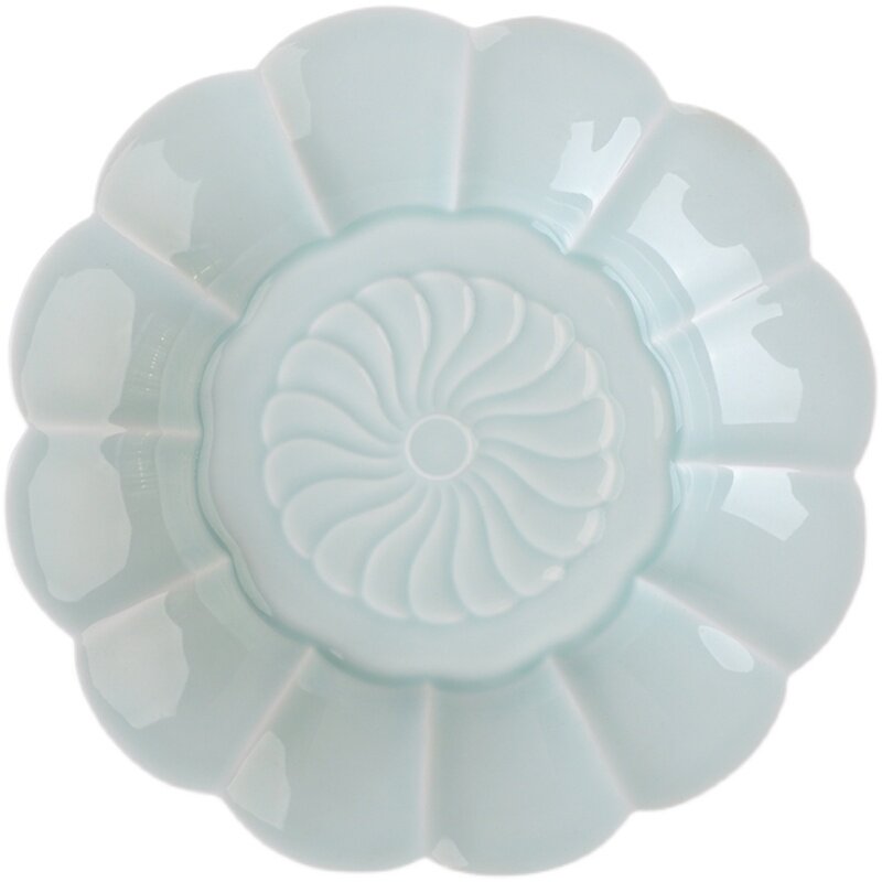 Household plate ceramic tableware hotel club special-shaped salad western plate tea set accessories pot bearing celadon blue