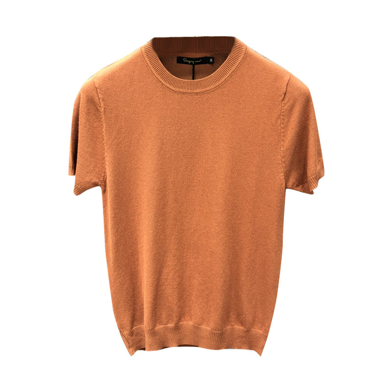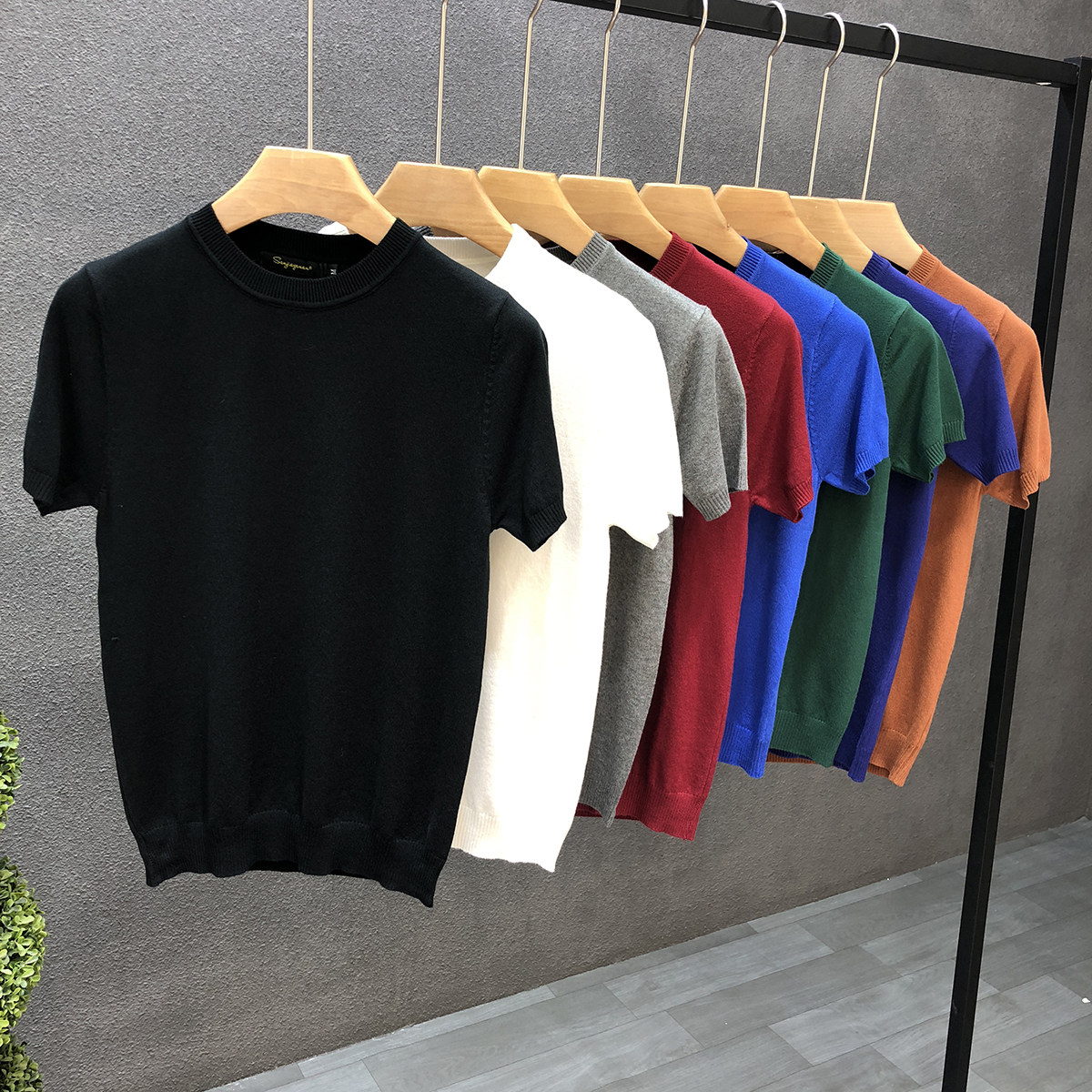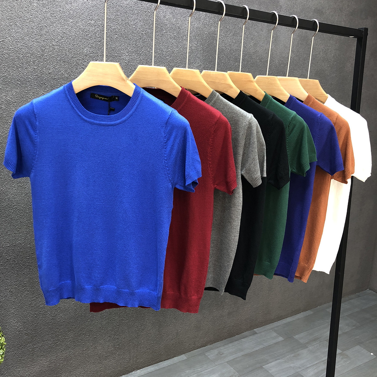 2021 new knitted short-sleeved t-shirt men's sweater trend handsome inner tie base shirt men's half-sleeve sweater