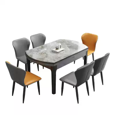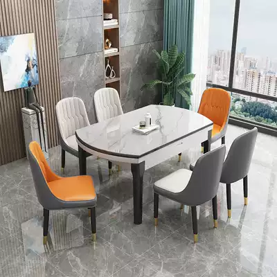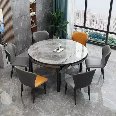 Rock plate dining table Modern simple light luxury variable round table telescopic dining table Household small apartment folding dining table and chair combination
