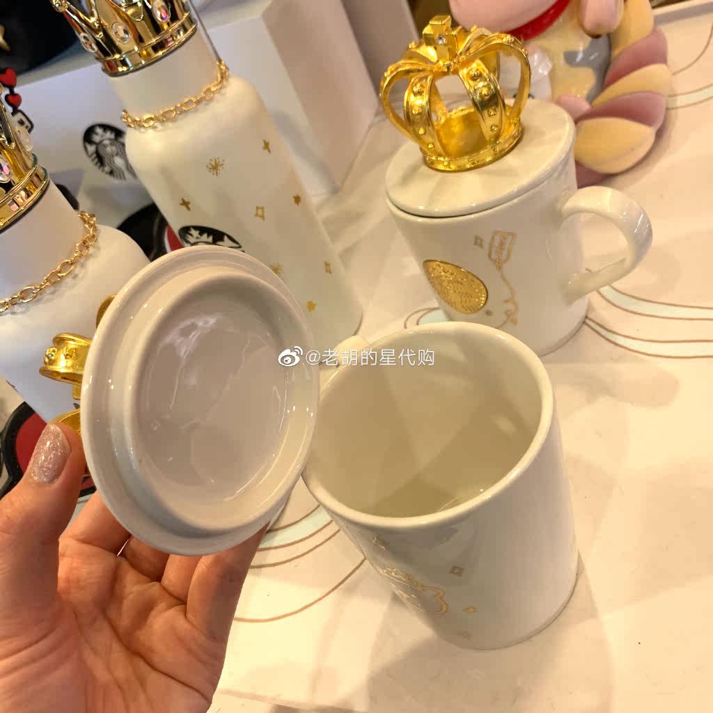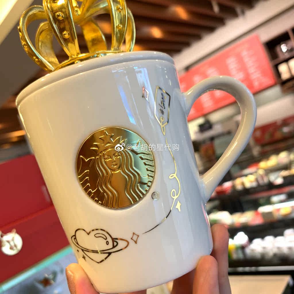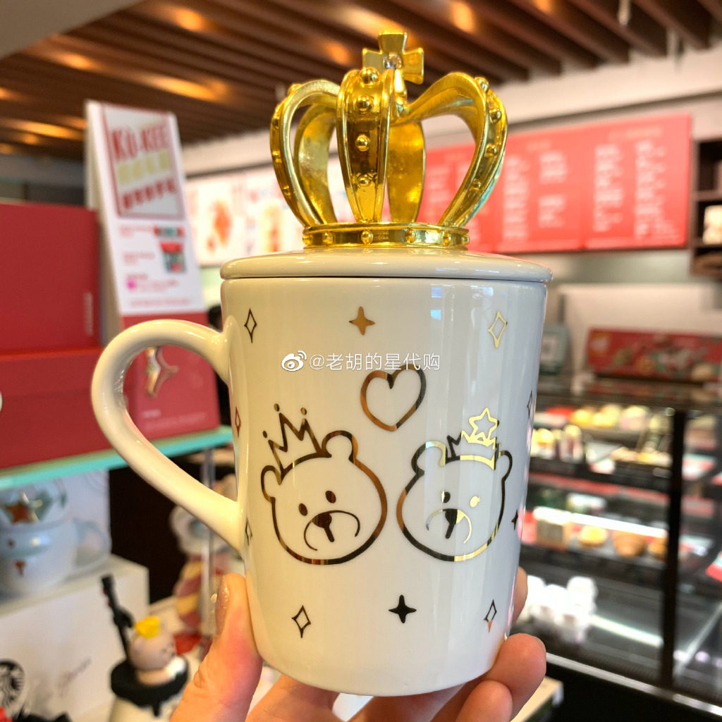 Starbucks 2021 Valentine's Day Gift Solid Golden Crown Water Drill Cup Lid Goddess Nameplate Little Bear Mark Cup Female