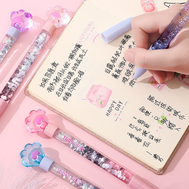 Luminous Cat Claw Quicksand Pen 10pcs Cute Glitter Super Cute Girly Heart Creative Primary School Student Gel Pen Cartoon