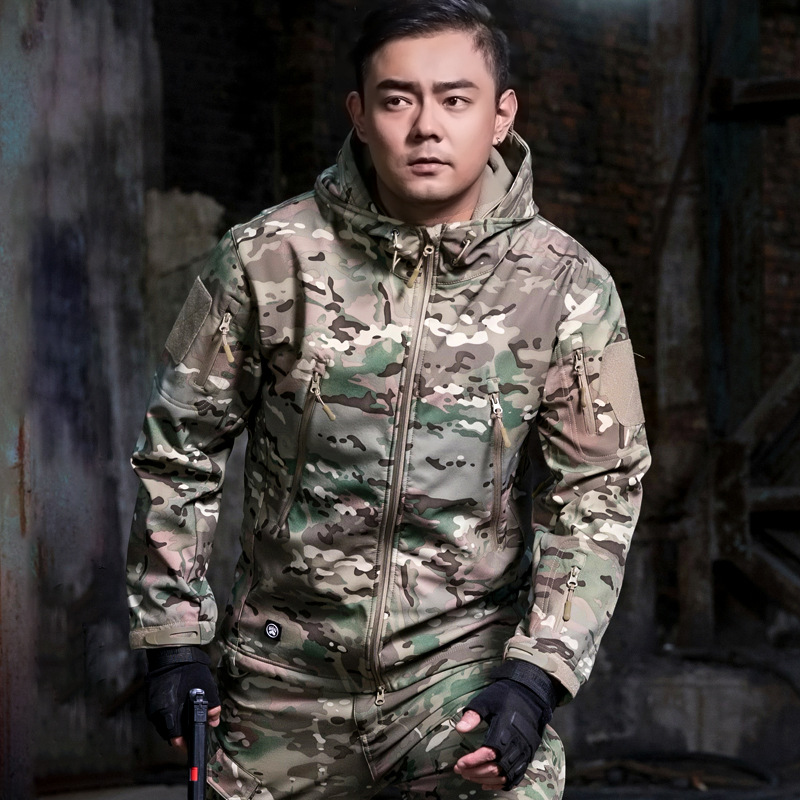 Gush elastic camouflate suit men's winter thickened waterproof instructors tactical soft shell submachine clothes three-piece suit women