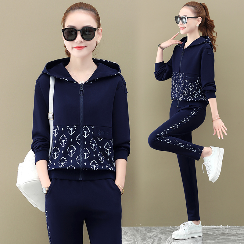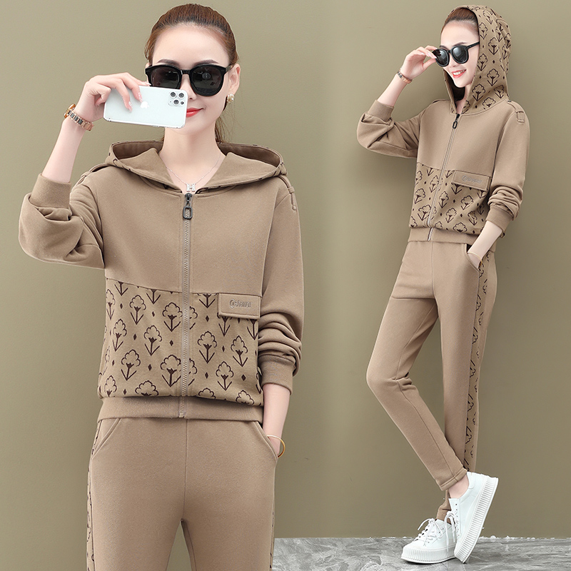 Western style casual sportswear suit female 2021 spring and autumn new fashion ladies large size loose sweater two-piece trendy