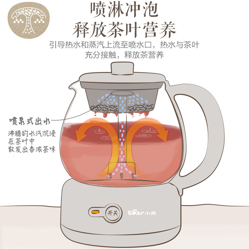 Little bear tea maker spray type integrated type automatic electric tea stove household small flower teapot glass boiling teapot