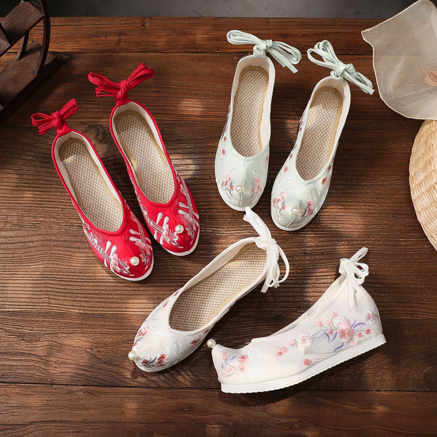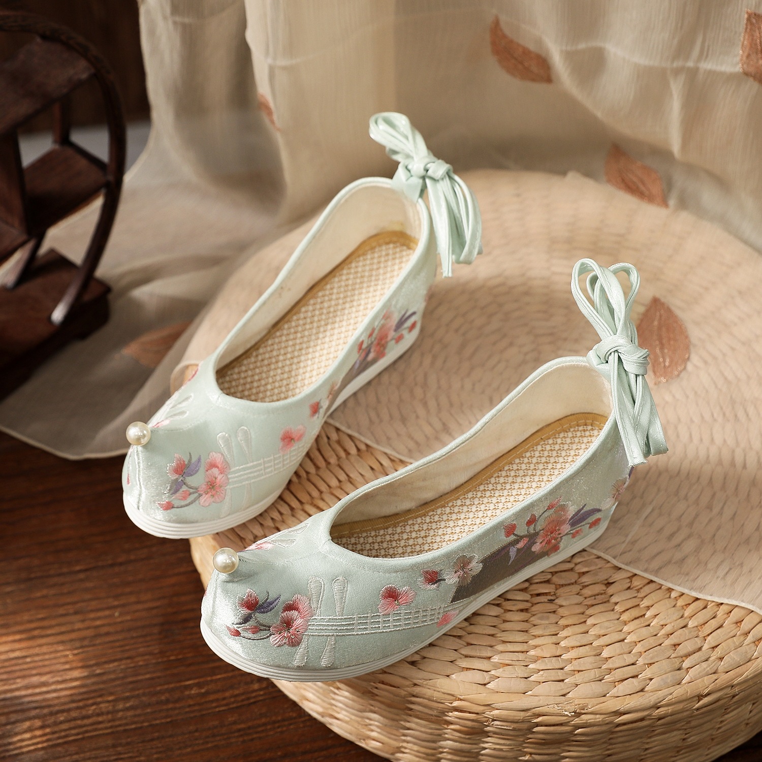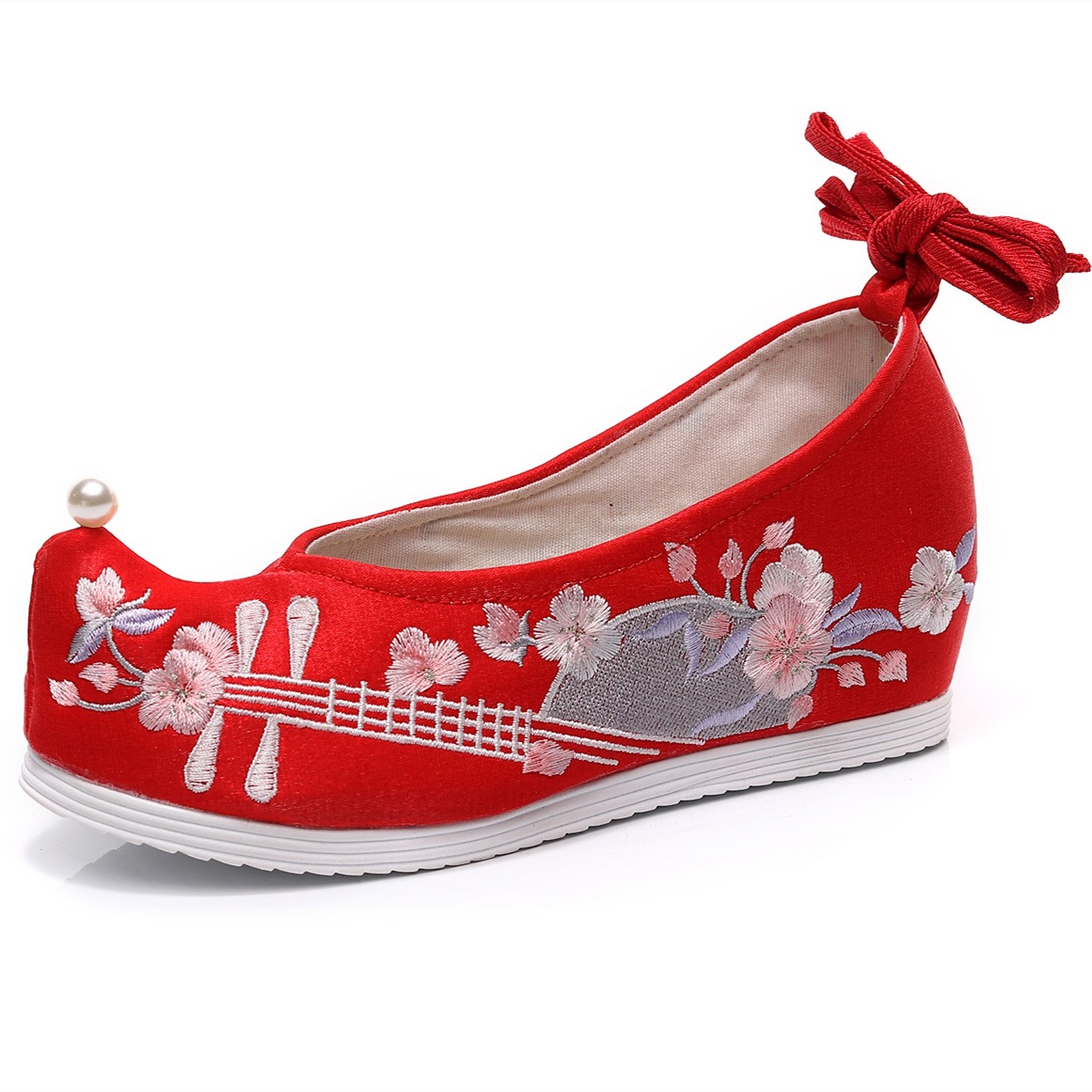 (Yueqin) 2020 new Hanfu women's ancient style shoes with heightened embroidered shoes with bow shoes and head-turned shoes within five centimeters