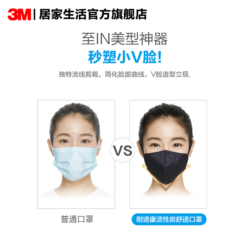 3M Nashikang comfortable mask three-dimensional bacterial filtration disposable activated carbon black mask individually packaged for men and women