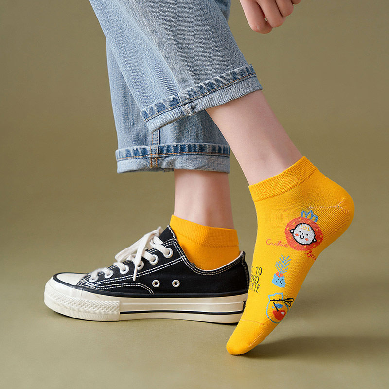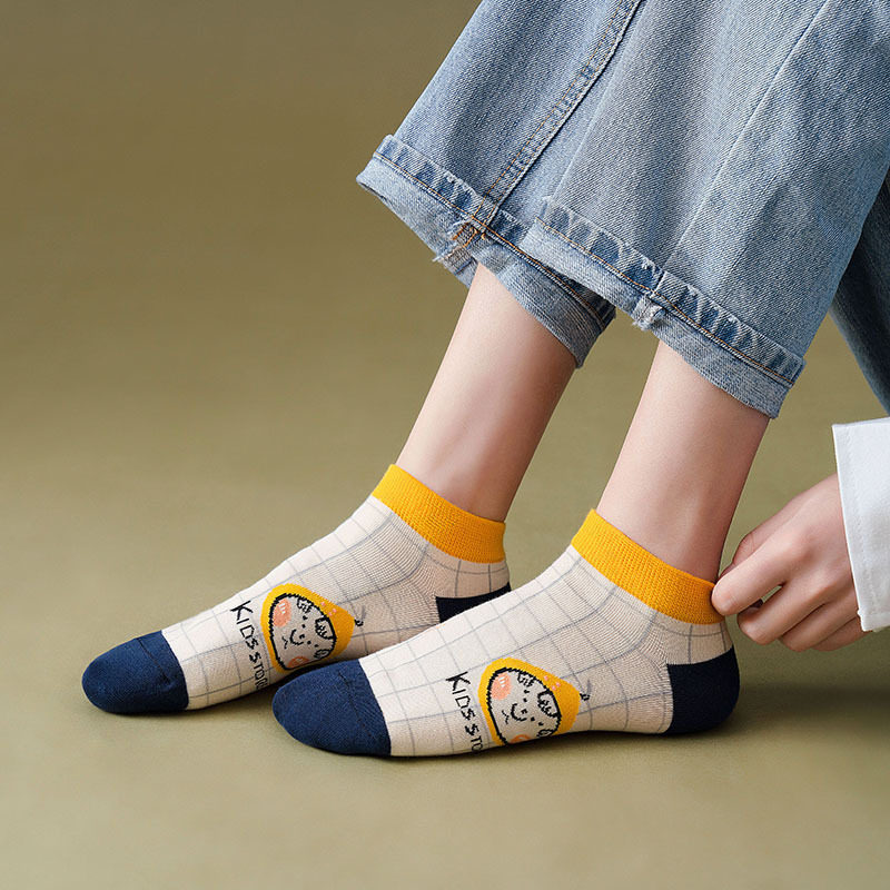 Combined Mount Korean Edition Summer Socks Children Socks Combed Cotton Creative Cartoon Invisible Socks Tide Lady Short Socks Thin