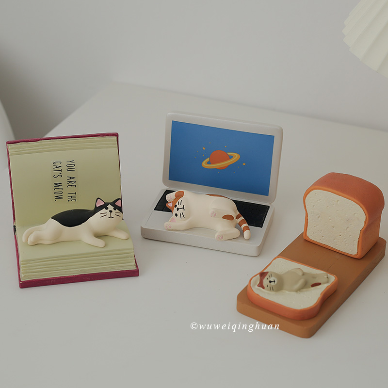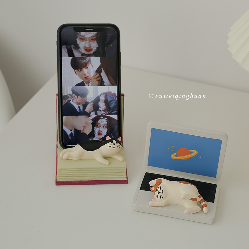 Healing cat mobile phone holder Japanese-style literature and art cute girl heart desktop decoration Dormitory lazy mobile phone holder