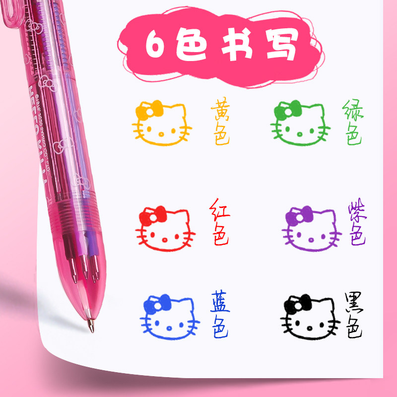 One positive 8 color ballpoint pen Hello kitty press 0 5mm cute teenage girl notes handbill special color KT cat atomy pen 4 color 6 color student with medium oil pen