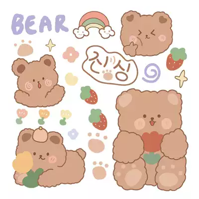 Milk tea bear strawberry rabbit holding flower Flower bear blowing bubble rabbit