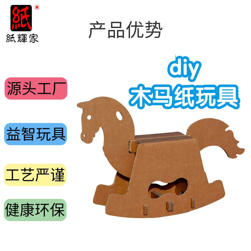 Corrugated cardboard children's Trojan horse hand-assembled educational toys rocking horse graffiti painted baby gift props horse