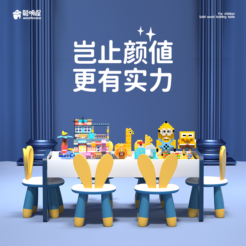 Children's building blocks Table Men and women Multi-functional Puzzle Big Grain Assembled Wooden Toy Bench Wood Big Game Table