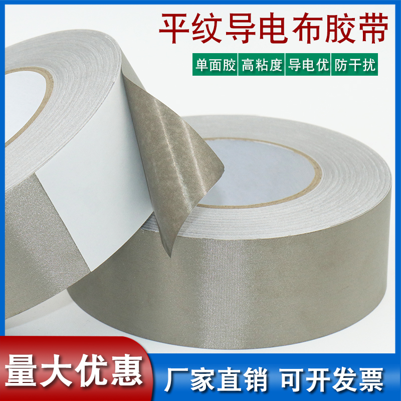 Conductive adhesive tape silver flat pattern conductive cloth single-face adhesive tape anti-interference electromagnetic shielding adhesive tape radiation-proof antistatic silver grey mobile phone remote control button contact point repair touch screen double-sided conductive