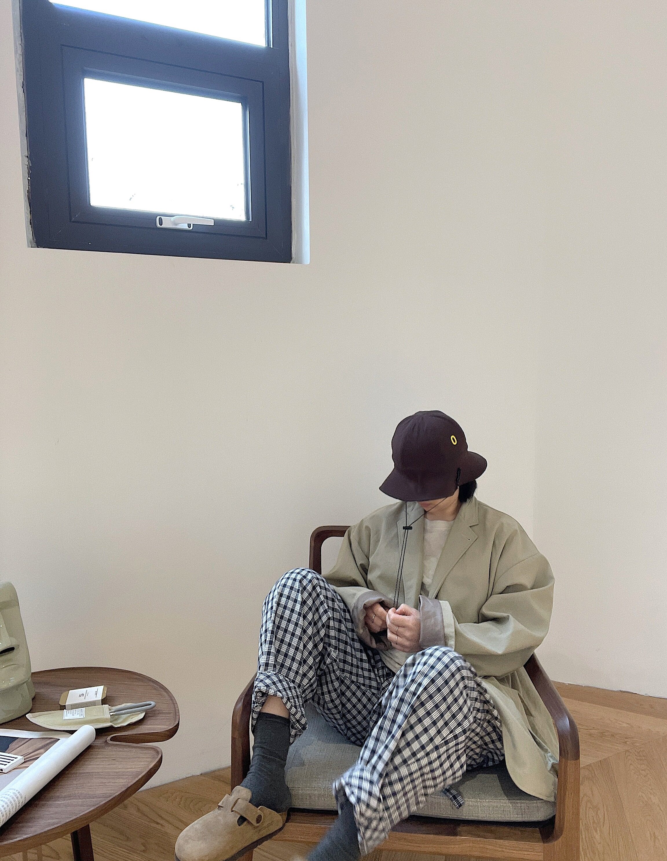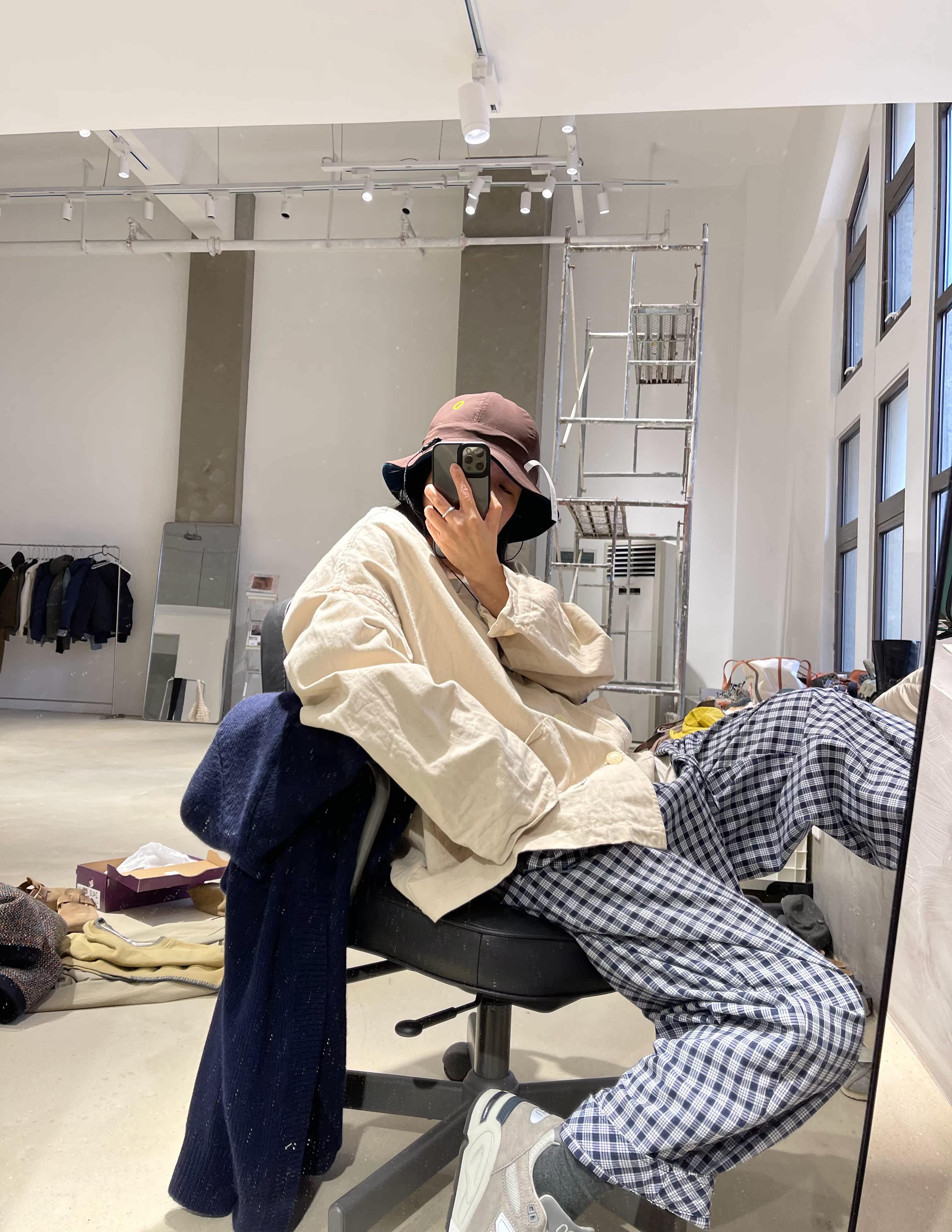 KC "C Series" Collection Class Giant Feels Double Sewn Shuttle casual High forcing lattice Loose Plaid Pants
