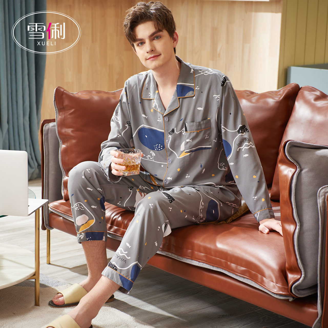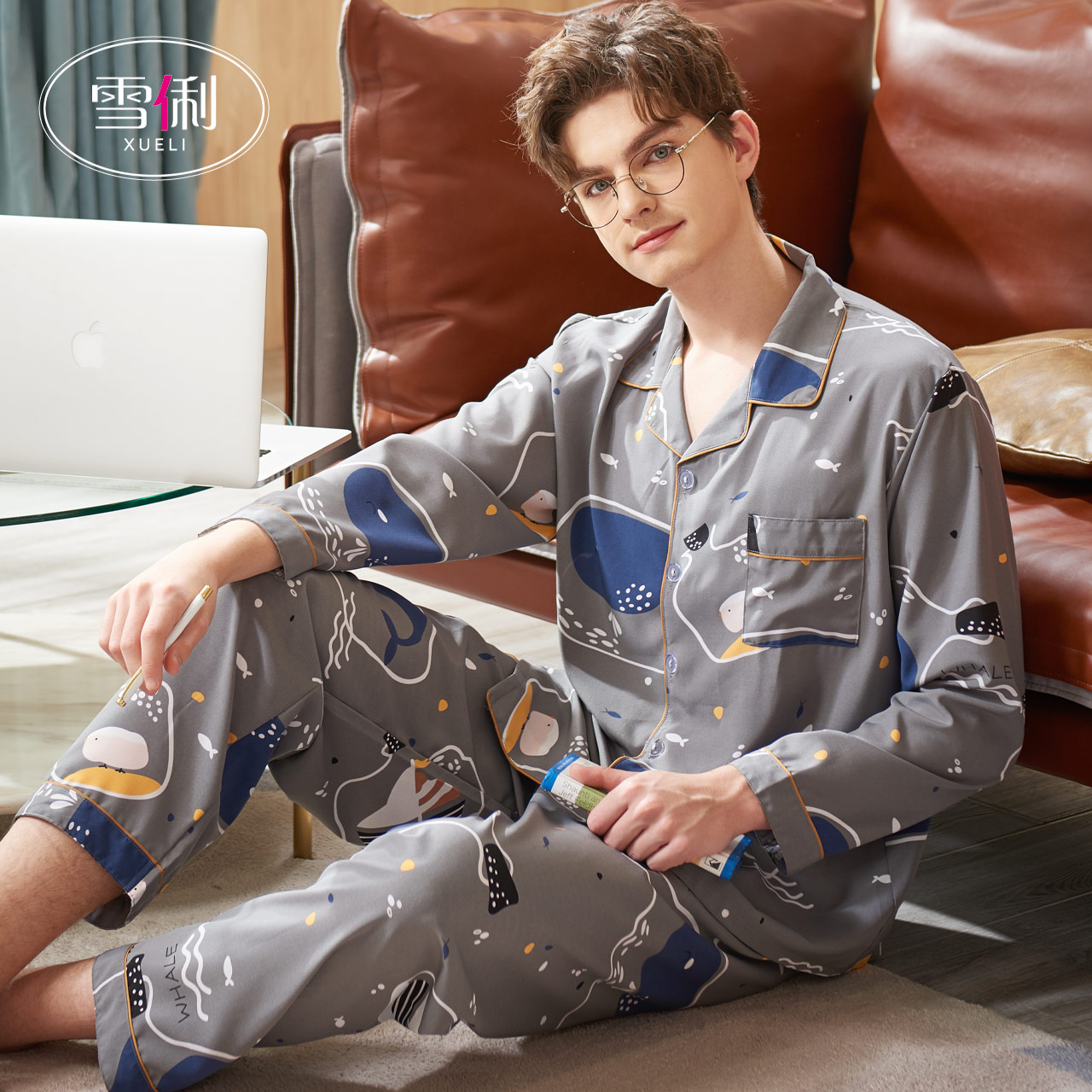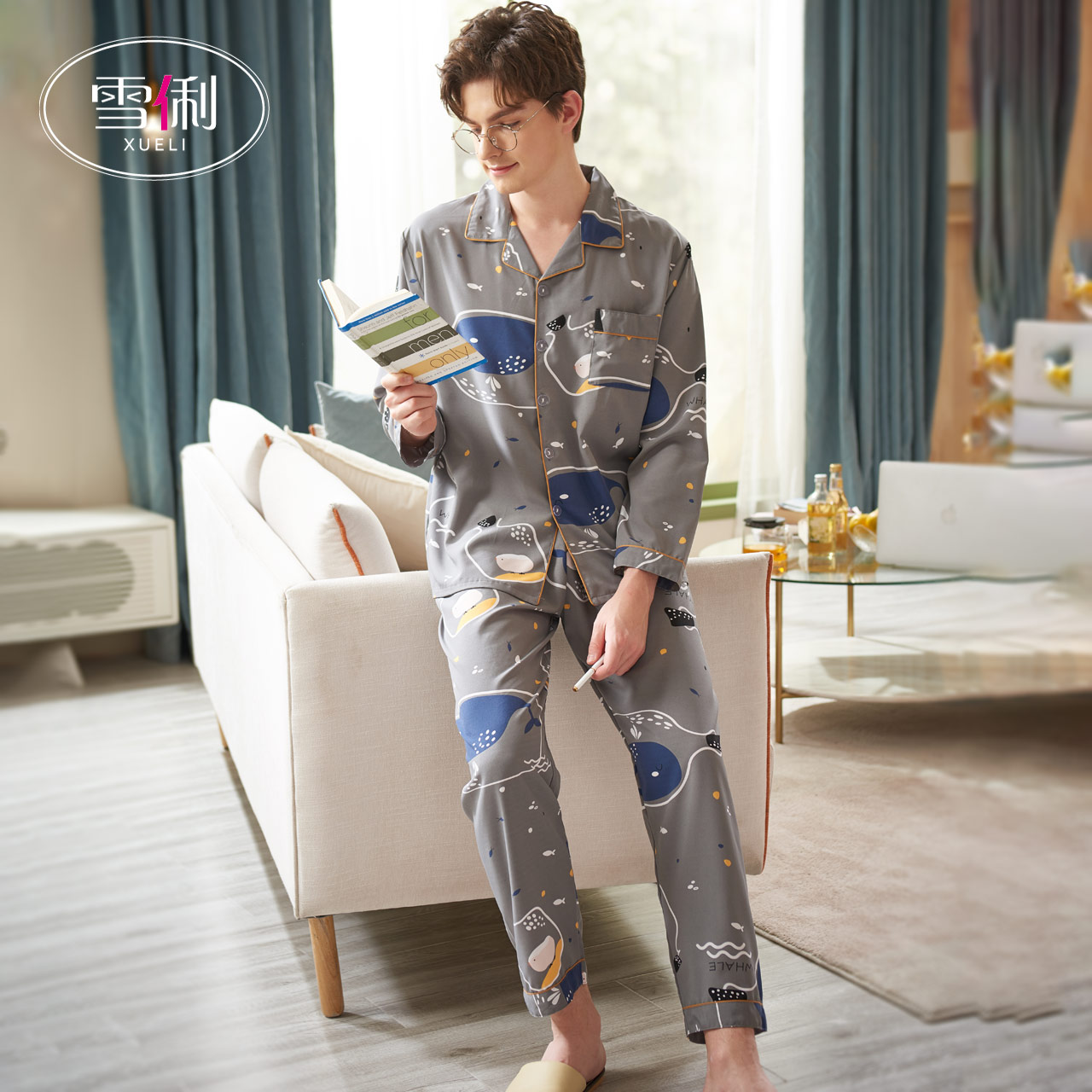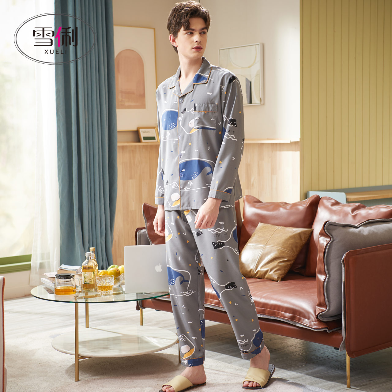 Snow Li pajamas men spring long sleeves imitation silk thin casual men's new ice silk plus size homewear set