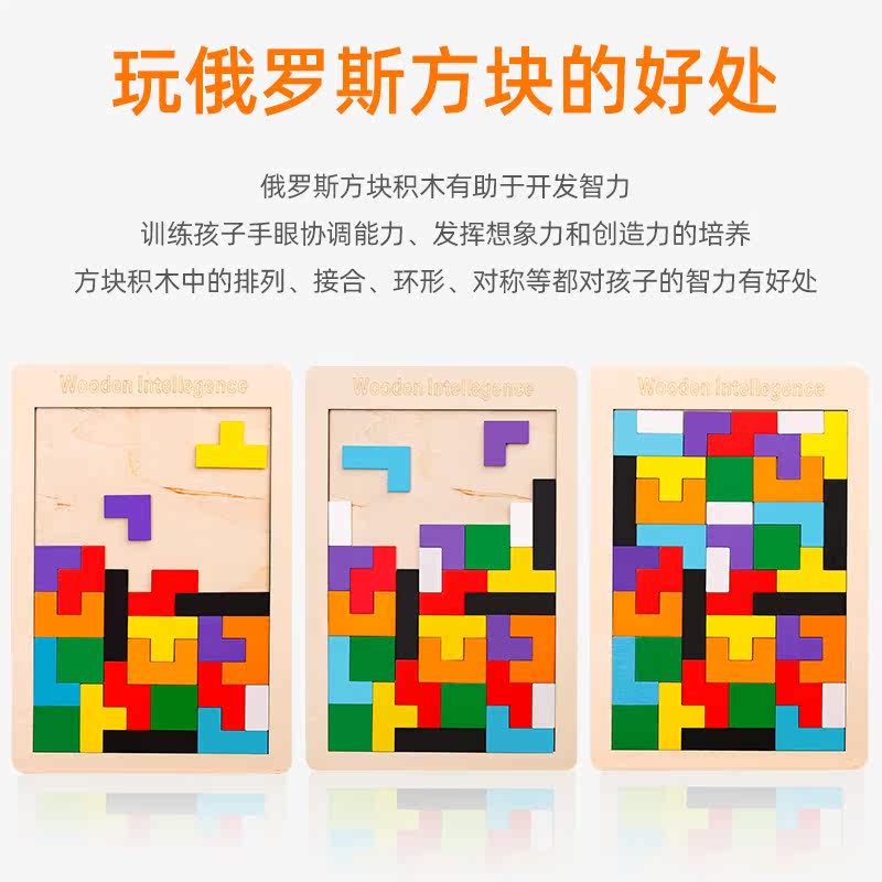 Wooden Tetris puzzle 1 jigsaw puzzle 2 children's educational early education toys 3 three-dimensional 4-year-old building blocks 5-6