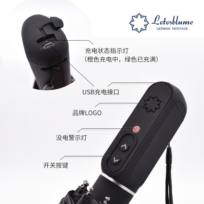 lotosblume German advanced intelligent electric umbrella automatic sunshade black glue sunscreen rain or shine