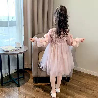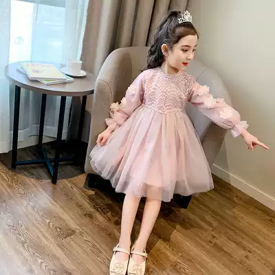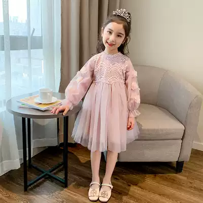 Girls' dress spring and autumn 2021 New lace princess dress big children's dress puffy gauze skirt
