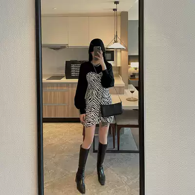 ASZY zebra pattern sweater dress women's 2021 spring new design sense niche stitching cold wind skirt