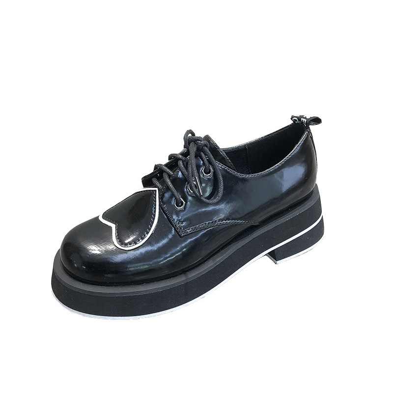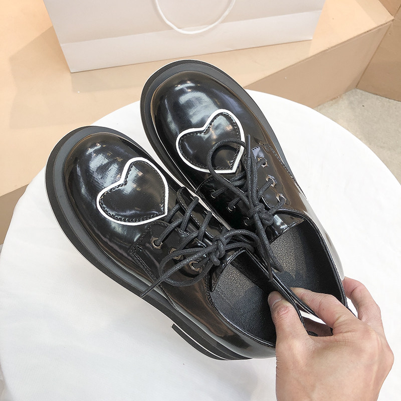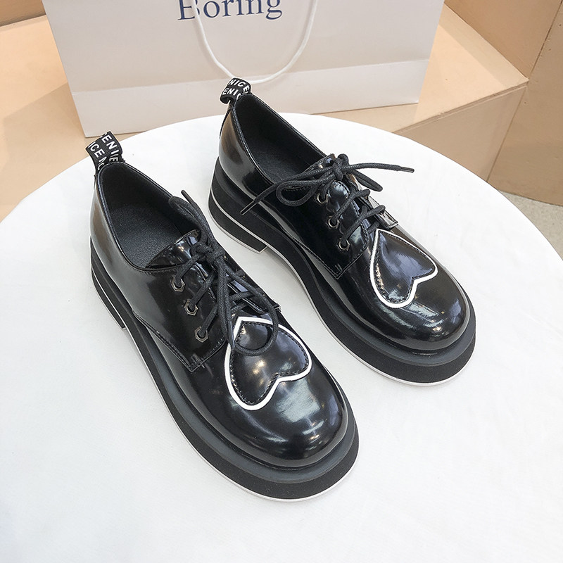 British style small leather shoes women's 2021 new round toe platform shoes all-match lace retro love single shoes women