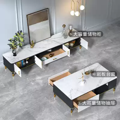 Rock panel TV cabinet Light luxury style modern simple coffee table combination small apartment living room 2020 new TV cabinet