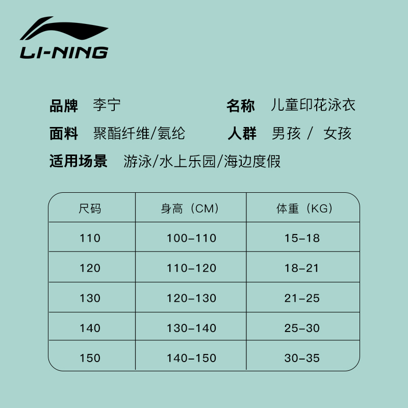 Li Ning Children's swimsuit Girls summer boys baby swimwear Medium and large virgin girl one-piece quick-drying sunscreen swimsuit