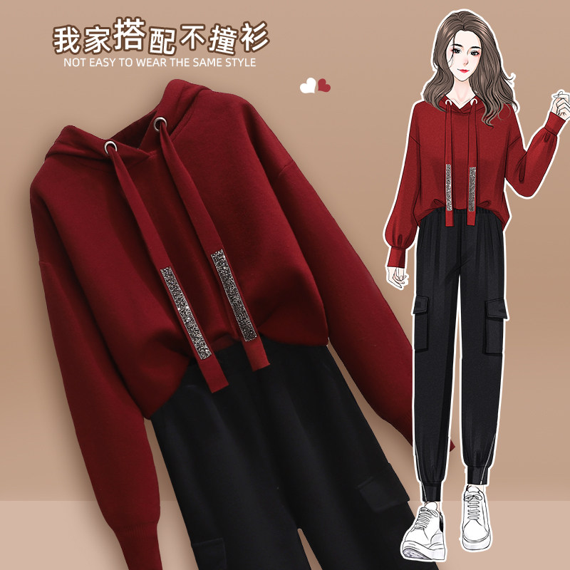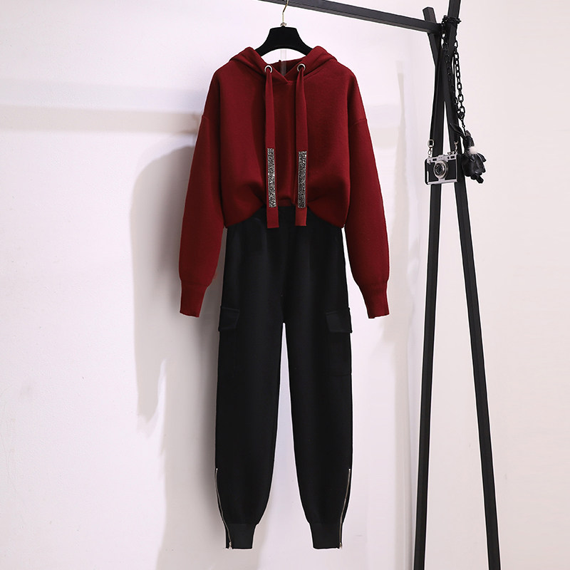 2022 autumn and winter new large size fat sister high-end salt cool sweater slim casual pants sports suit