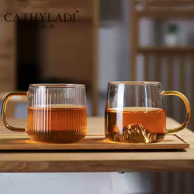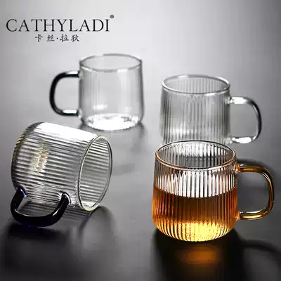 Cathyladi household glass Kung Fu tea set High temperature resistant and anti-scalding transparent cup with handle Model male juice cup
