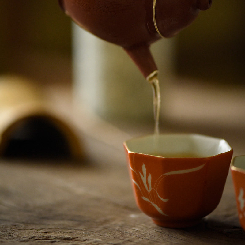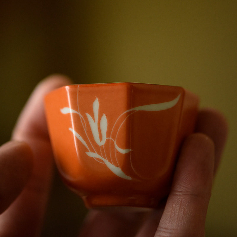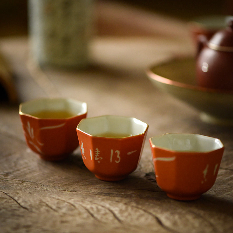 View of Jingdezhen Mass Yunhai Fasting Cup of the Coral Red and Flowers Humor 8-side Tea Tea Tea Cup Individual Cup Single Cup