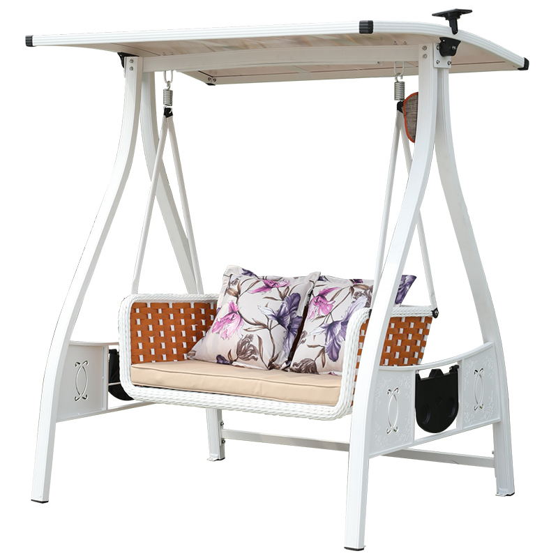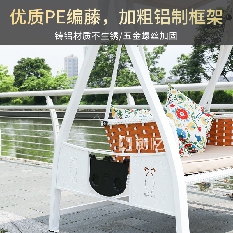 Tree memory white woven rattan double swing Outdoor courtyard hanging basket rattan chair Household cast aluminum open-air balcony Garden hanging chair
