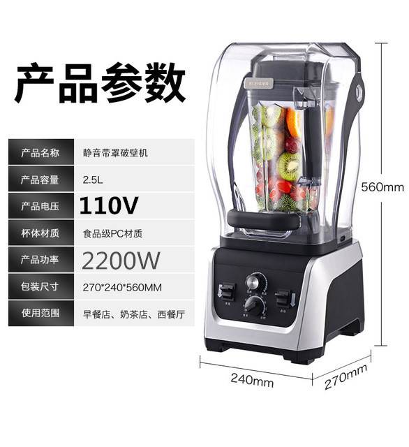 110v ice-sand machine commercial milk tea shop mute with hood soundproof wall-breaking machine mixer crushed ice-pressed fruit juicer