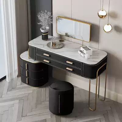 Light luxury rock board makeup table Modern simple large ping bedroom black high-end luxury makeup table storage cabinet one