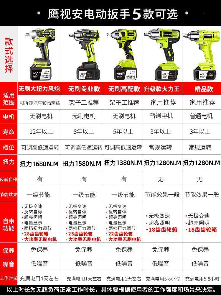 Electric tools Daquan rechargeable lithium impact brushless wrench shelf worker Pneumatic wrench strong auto repair large torque plate