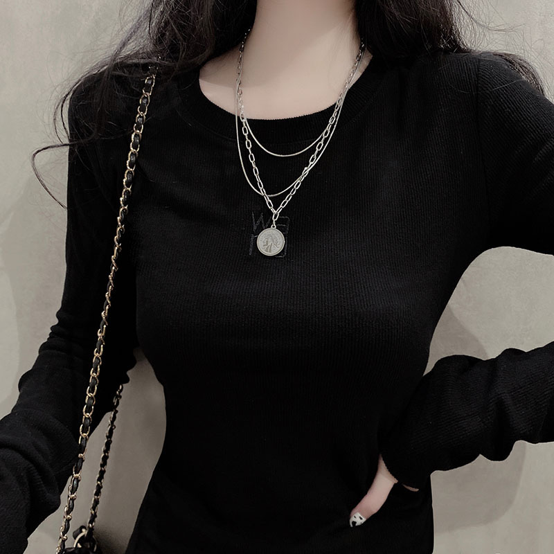 Korean top women women's 2021 autumn and winter New slim Joker slim base shirt long sleeve T-shirt with foreign style ins