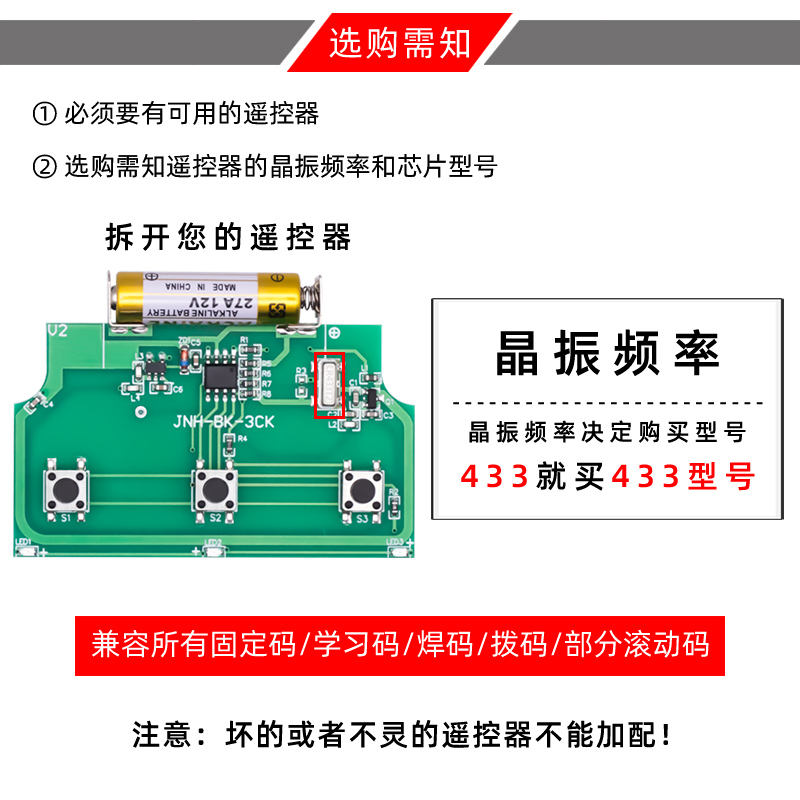 433 pair copy remote control roller shutter door Garage door automatic door Telescopic door universal 86 type wireless wall switch