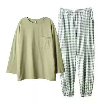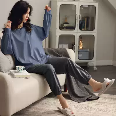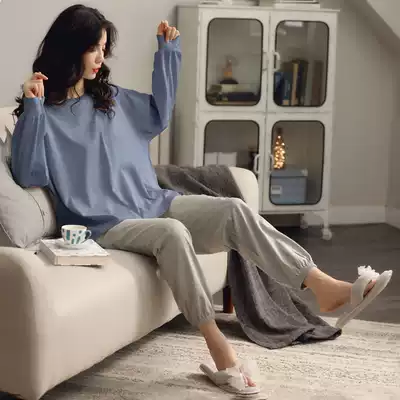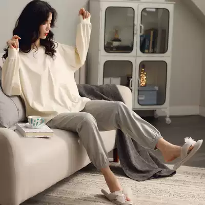Pajamas women's 2021 new autumn and winter pure cotton solid color long sleeves can be worn outside spring and autumn home clothes two-piece suit