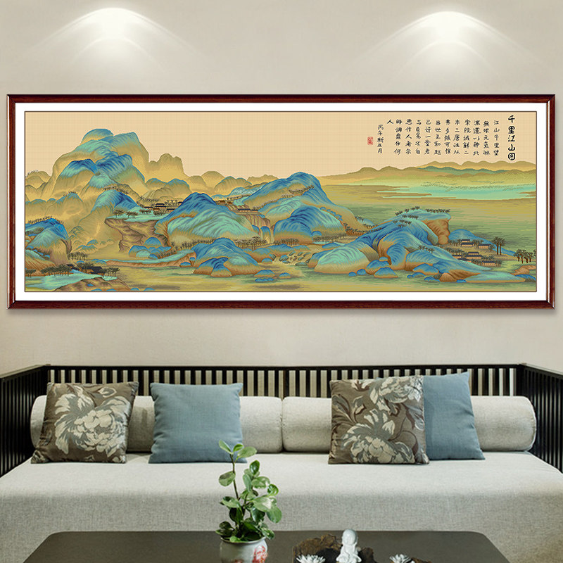 Spring cross stitch Thousands of miles of rivers and mountains embroidery large living room landscape painting Forbidden City collection of famous paintings self-embroidery
