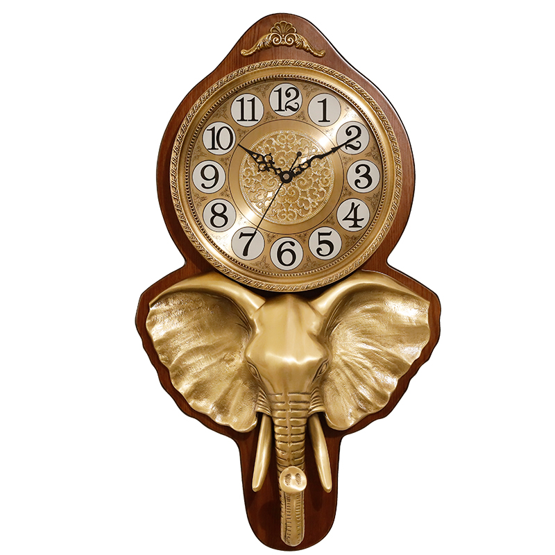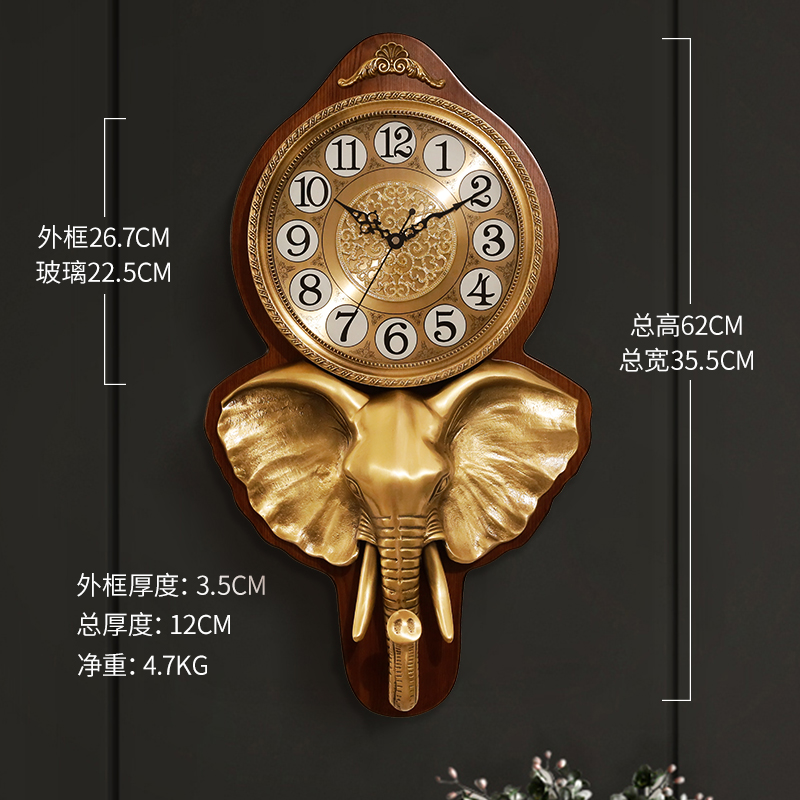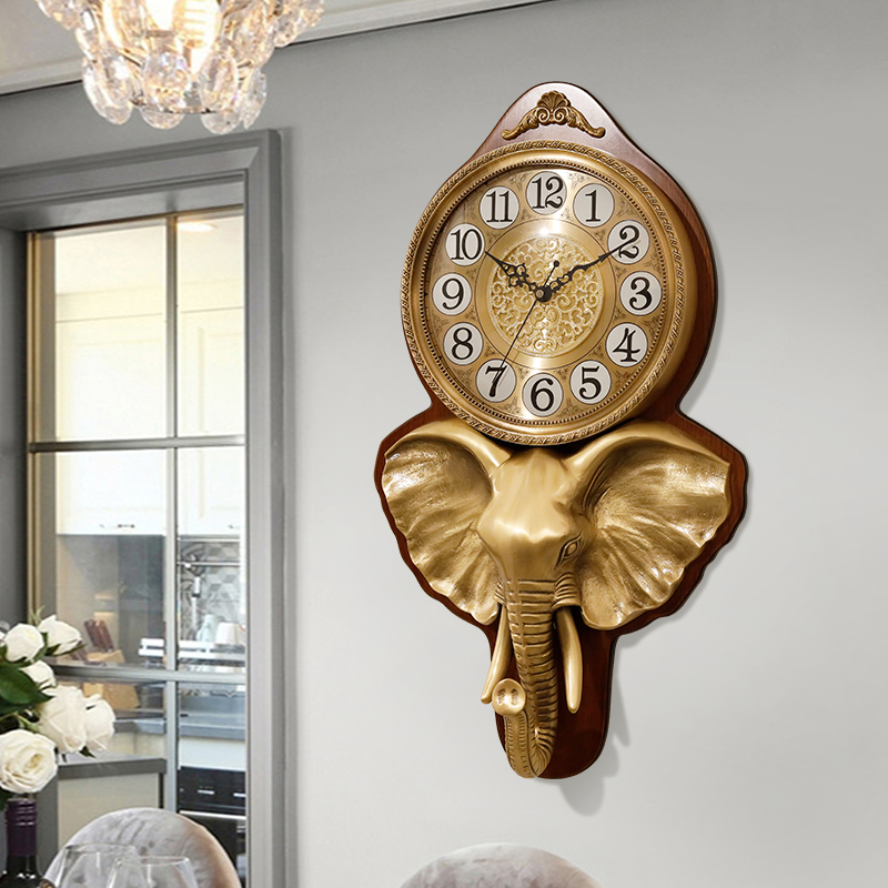 American pure brass watch European retro wall wall watch for a living room clock for elephant head wooden wall wall