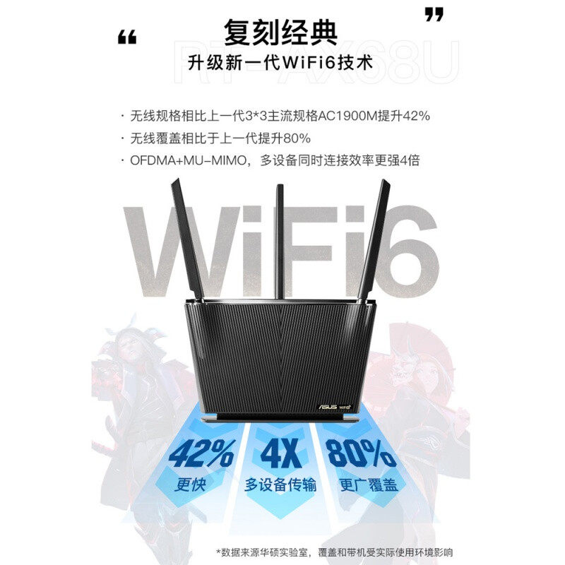 WIFI6 electric race black samurai) SUSTech RT-AX68U one thousand trillion port router home game AiMesh2 0