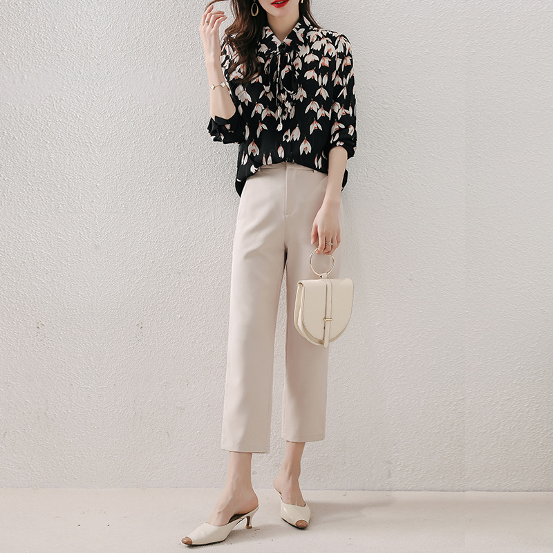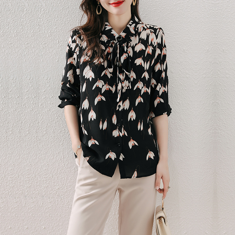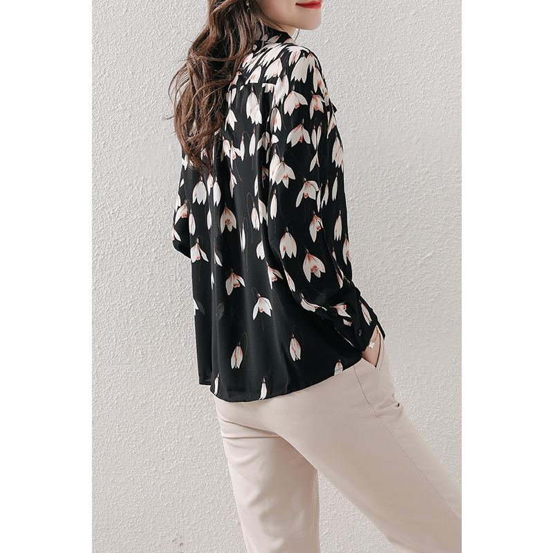 Printed shirt women's new spring 2021 Korean version of high-end long-sleeved shirt design sense niche light familiar wind top