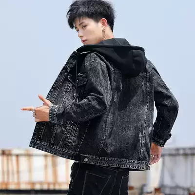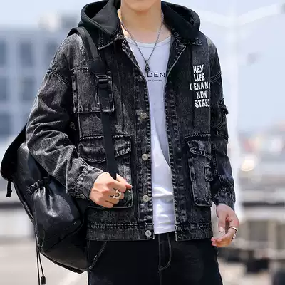 2021 new autumn hooded denim coat men's Korean trend ins Tide brand tooling jacket jacket men's clothes