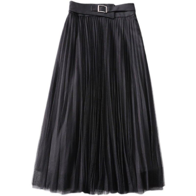 Half Body Skirt Woman Spring Autumn New Korean version of the long version Waist Seal Design Sensation 100 lap Pure Plexu Skirt Mesh Dress Mesh Dress