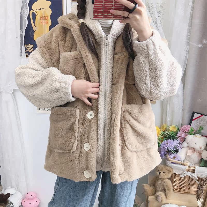 (suede Machia) foot room JK original autumn and winter warm pocket Machia soft girl jacket