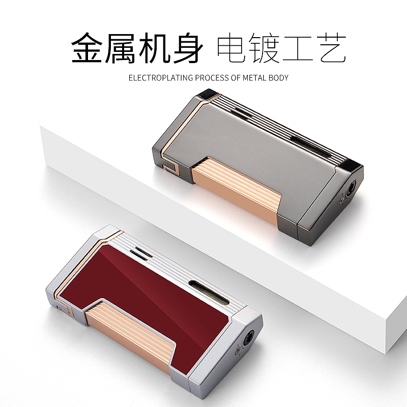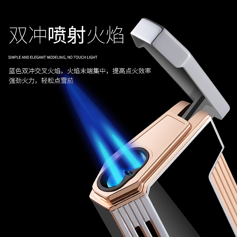 Double Fire Blue Flame Straight Punch Mesh Red Cigar Lighter Inflatable Windproof Creative Personality Men Tide Explosion Proof Metal Housing
