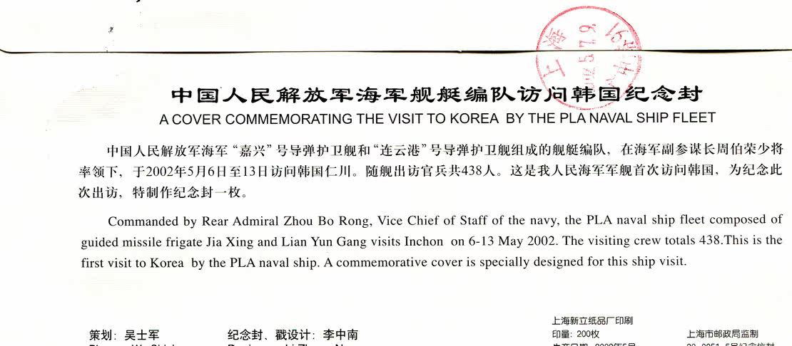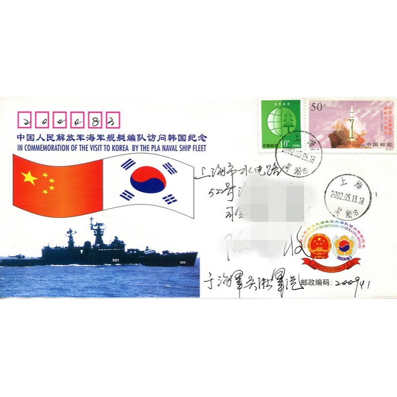 Envelope of the Chinese People's Liberation Army Navy Ship Formation Visiting South Korea