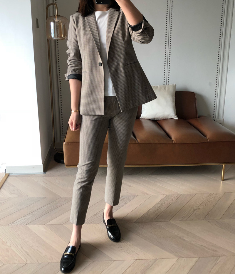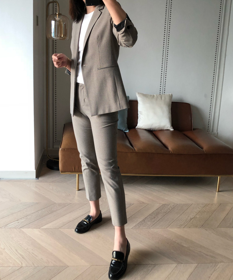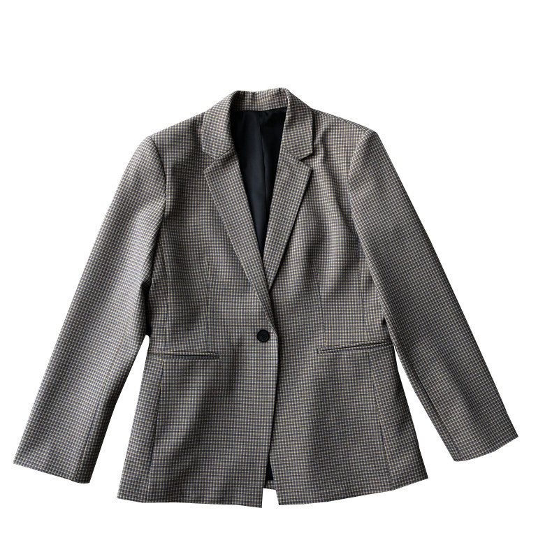 TH Theoretician early spring new advanced color matching fine plaid one button suit capable temperament suit 0120A3
