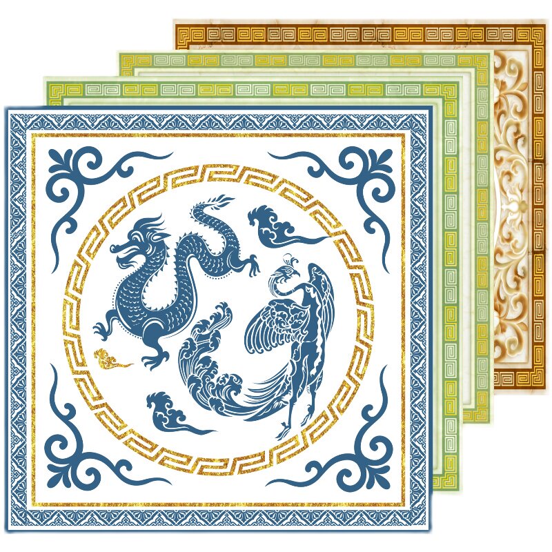Custom Chinese living room tile parquet Restaurant Longfeng presents Xiangji plate brick puzzle throwing crystal brick water knife and floor tile pattern