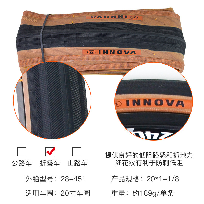 INNOVA 20 inch 451 small wheel diameter tire 20*1-1 8 retro yellow edge folding tire